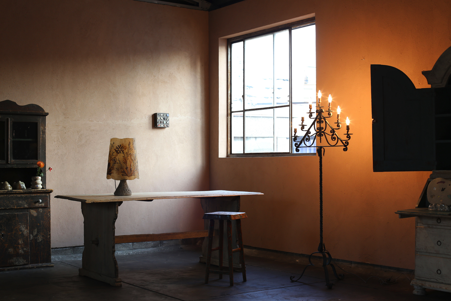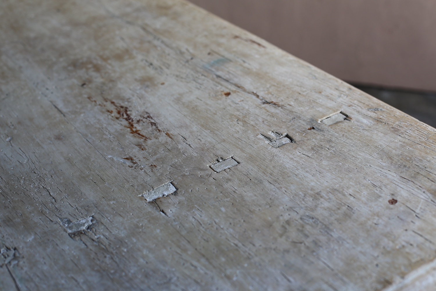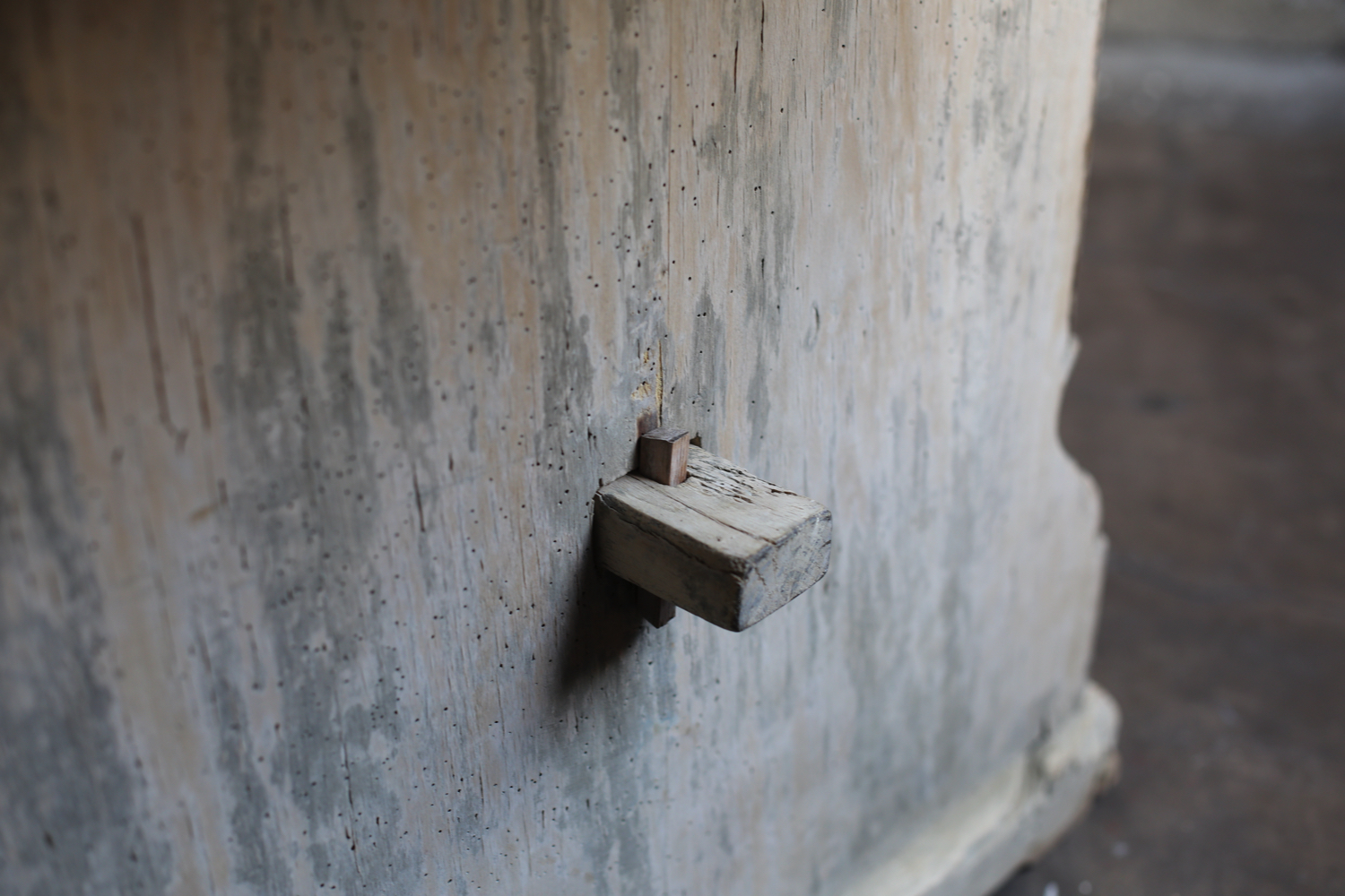 長い年月を経た木肌の風合いや、淡く残る塗装が静かな存在感を放ちます。