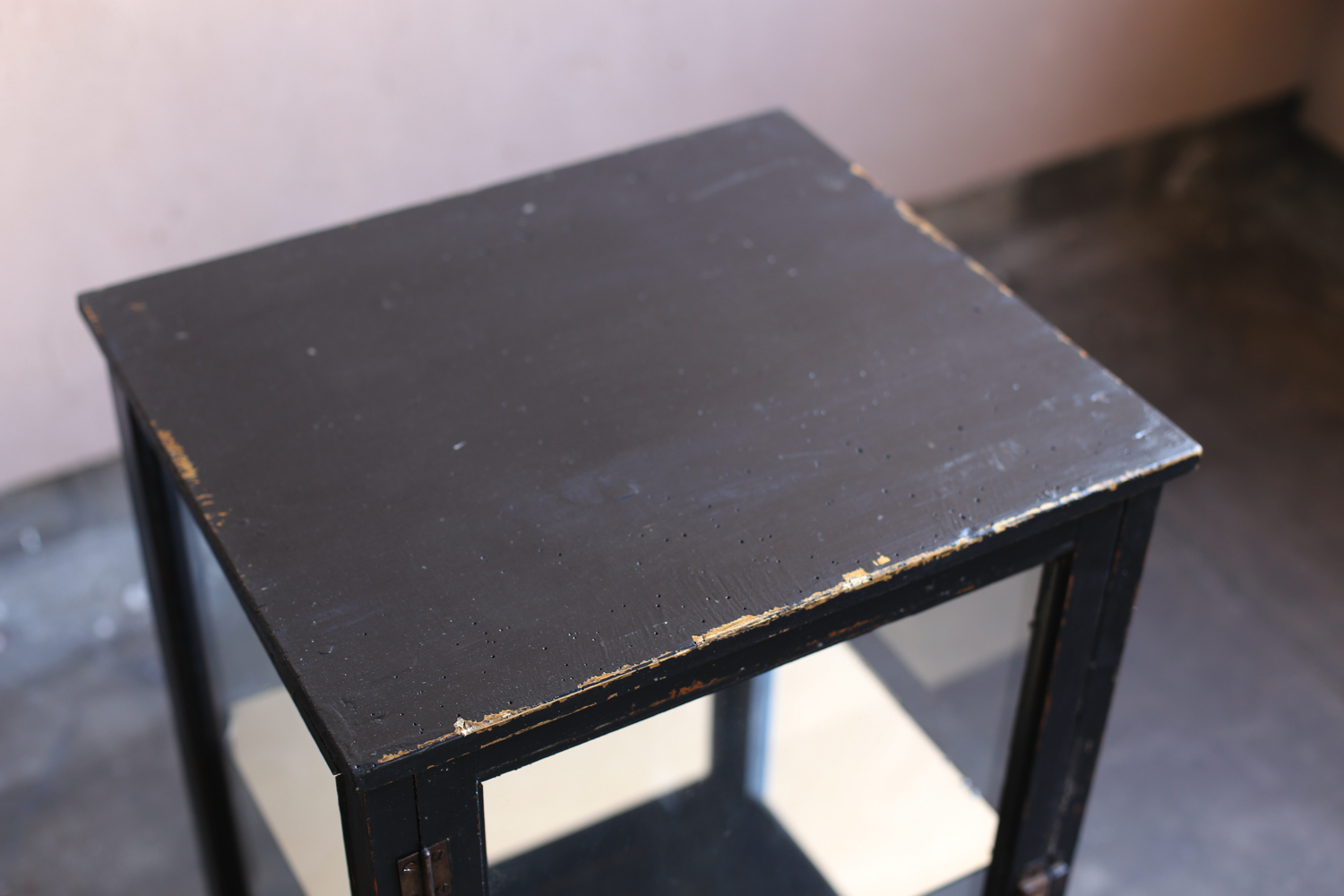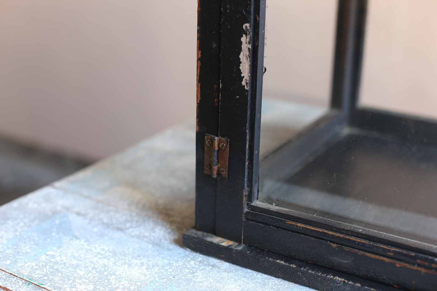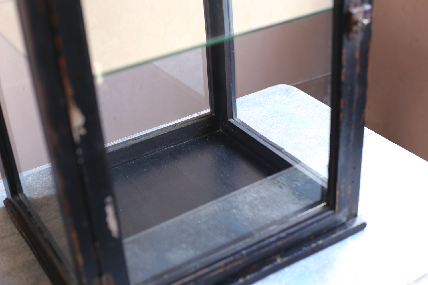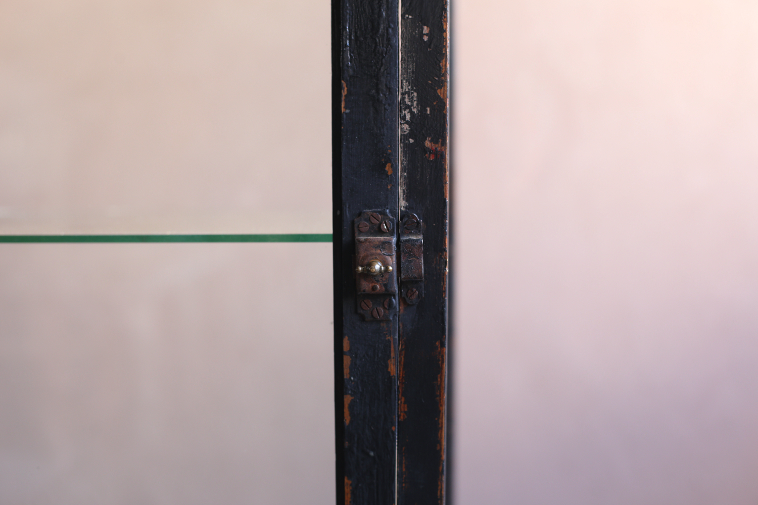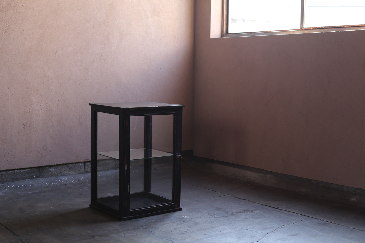 ベルギーで仕入れた黒塗りのアンティーク・ガラスショーケース。シンプルな木製フレームにガラスを組み込み、内部には一段のミラー棚を備えています。ミラーは古い風合いを残しており美しいです。ディスプレイ用として商店や薬局、工房などで用いられたと考えられる実用家具で、黒いペイントは長い年月を経て落ち着いた風合いを纏い、味わい深い存在感を放ちます。コンパクトながらも重厚感があり、時代を超えてコレクションやオブジェの展示に適した一品です。