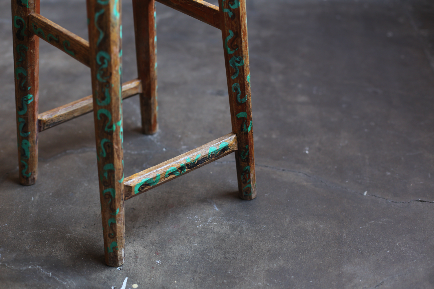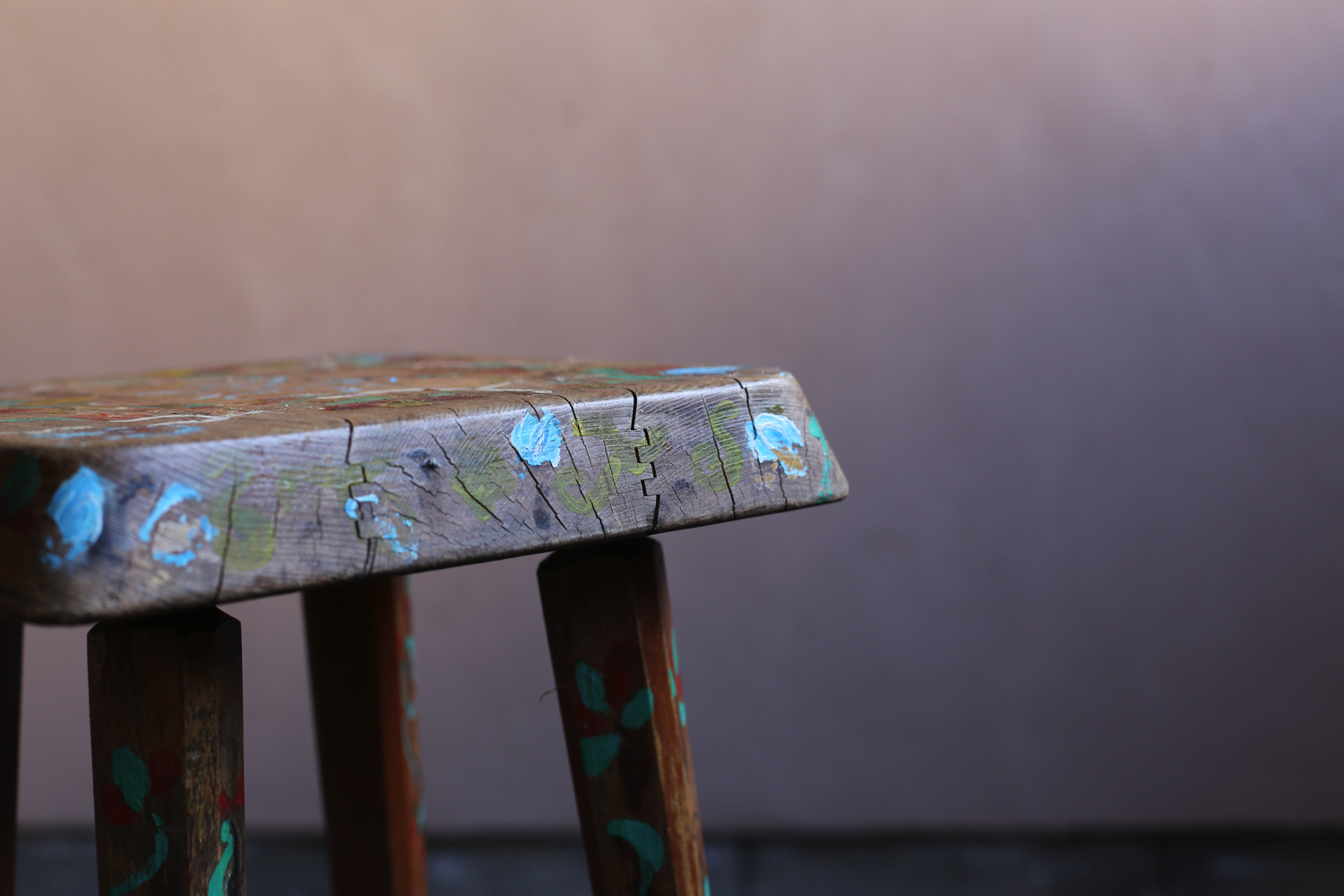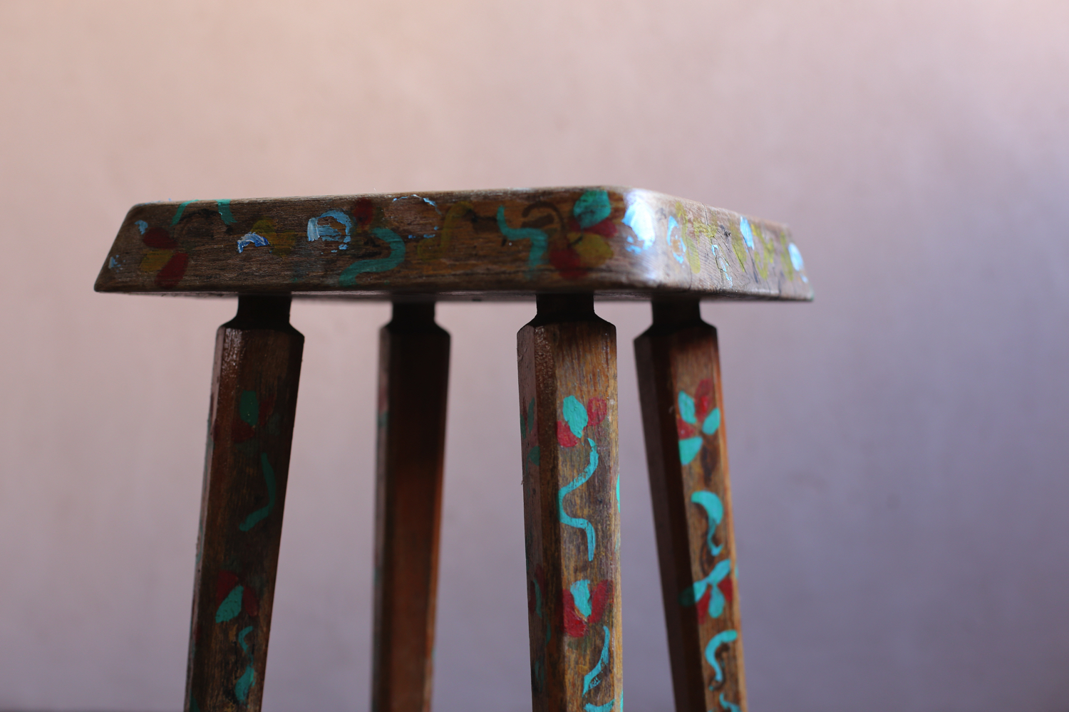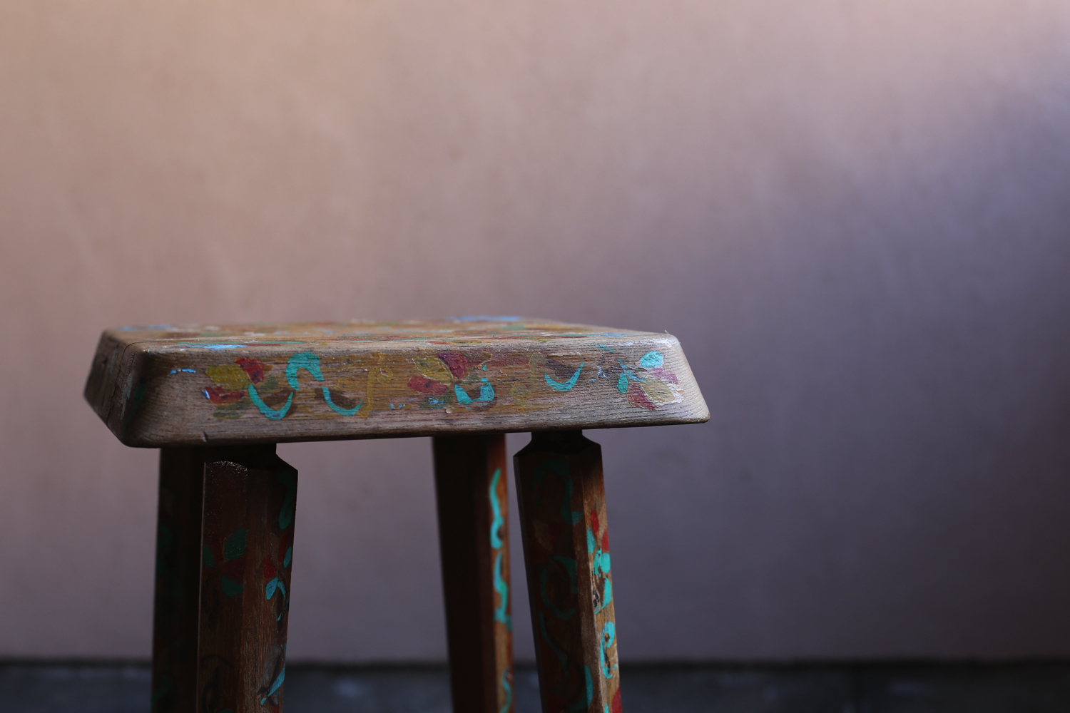 そこに、前の持ち主がペイントを施して使用していたようです。プランターを置く花台として使用していたとのことです。そのペイントも素敵なのでそのままの状態にて。