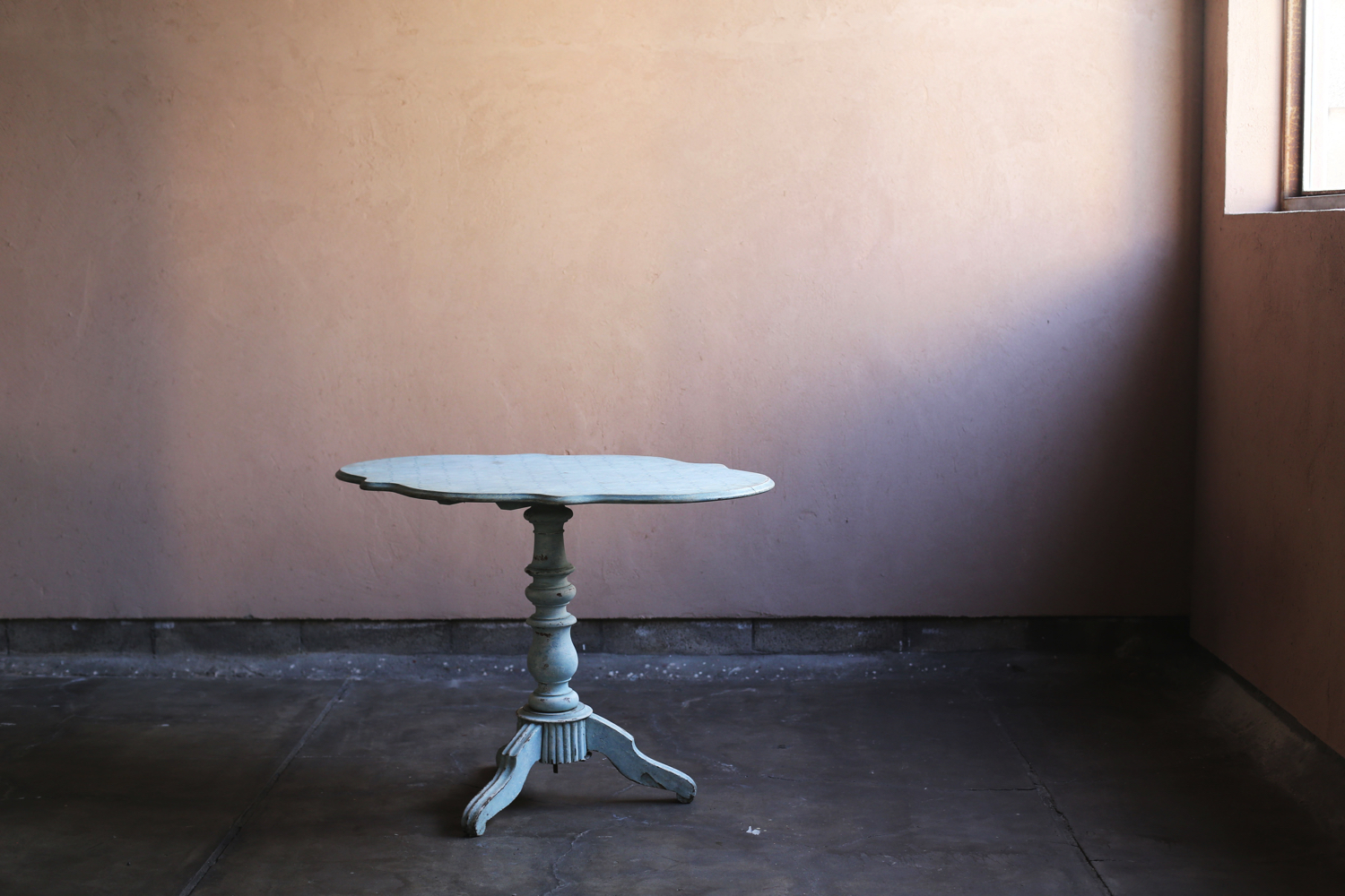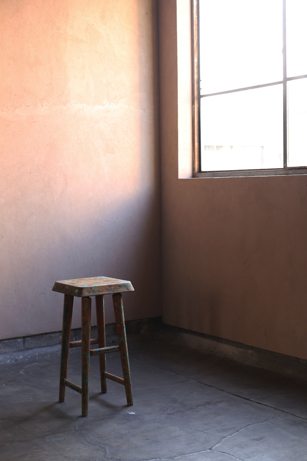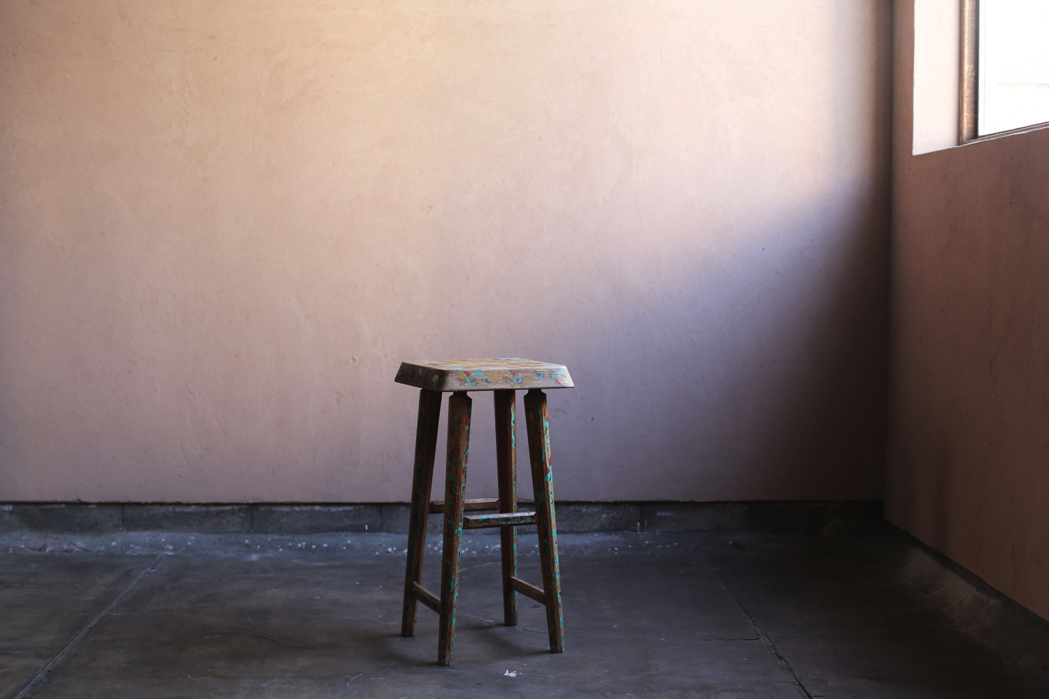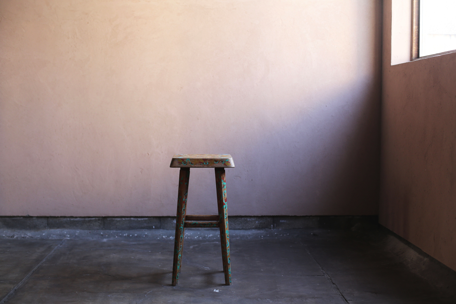 そこに、前の持ち主がペイントを施して使用していたようです。プランターを置く花台として使用していたとのことです。そのペイントも素敵なのでそのままの状態にて。