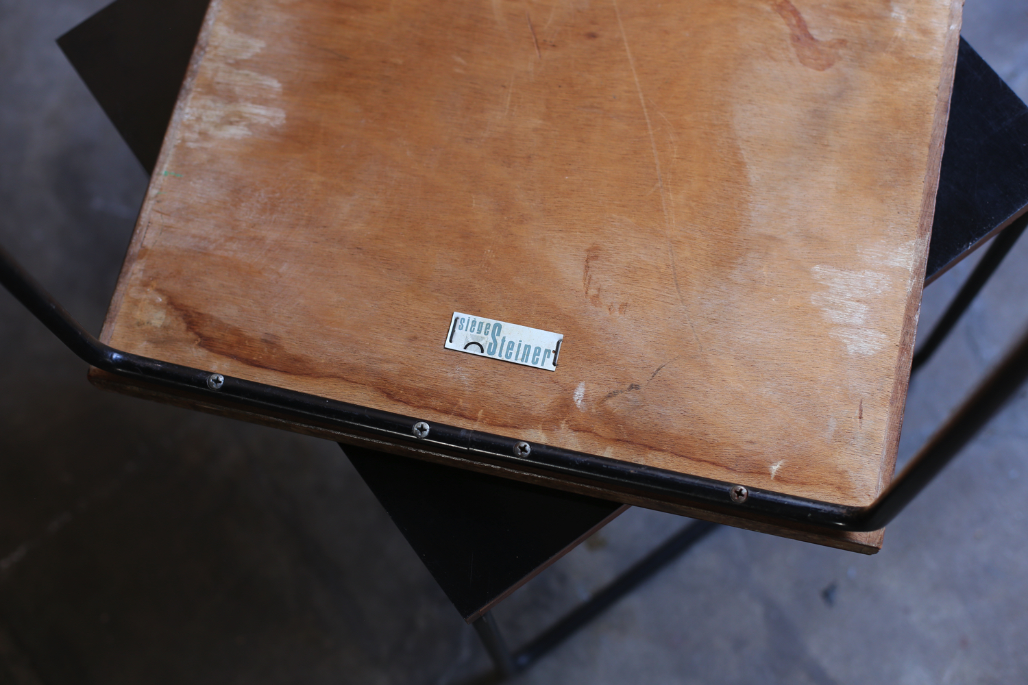 フランスを代表するデザイナー、ピエール・ガーリッシュがSteiner社のためにデザインした「Volante」サイドテーブルのセット。ミニマルなスチールフレームに薄い天板を組み合わせた軽快な構造は、戦後フランスの合理性とエレガンスを象徴しています。用途に応じて単体でも組み合わせでも使える柔軟なデザインは、ギャリッシュのモダンデザイン哲学を如実に示すもの。シンプルながらも洗練された佇まいは、今なおタイムレスな魅力を放っています。