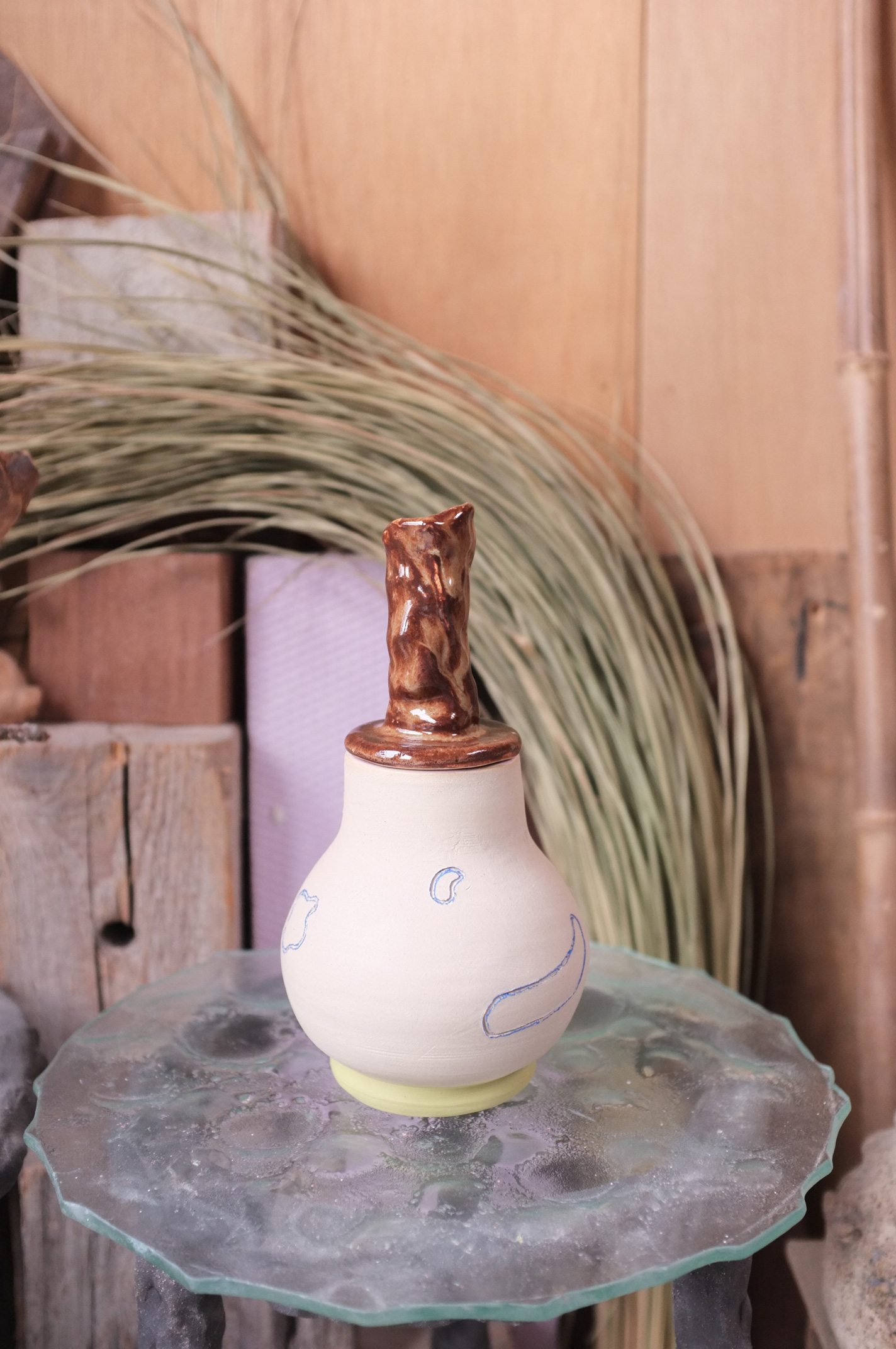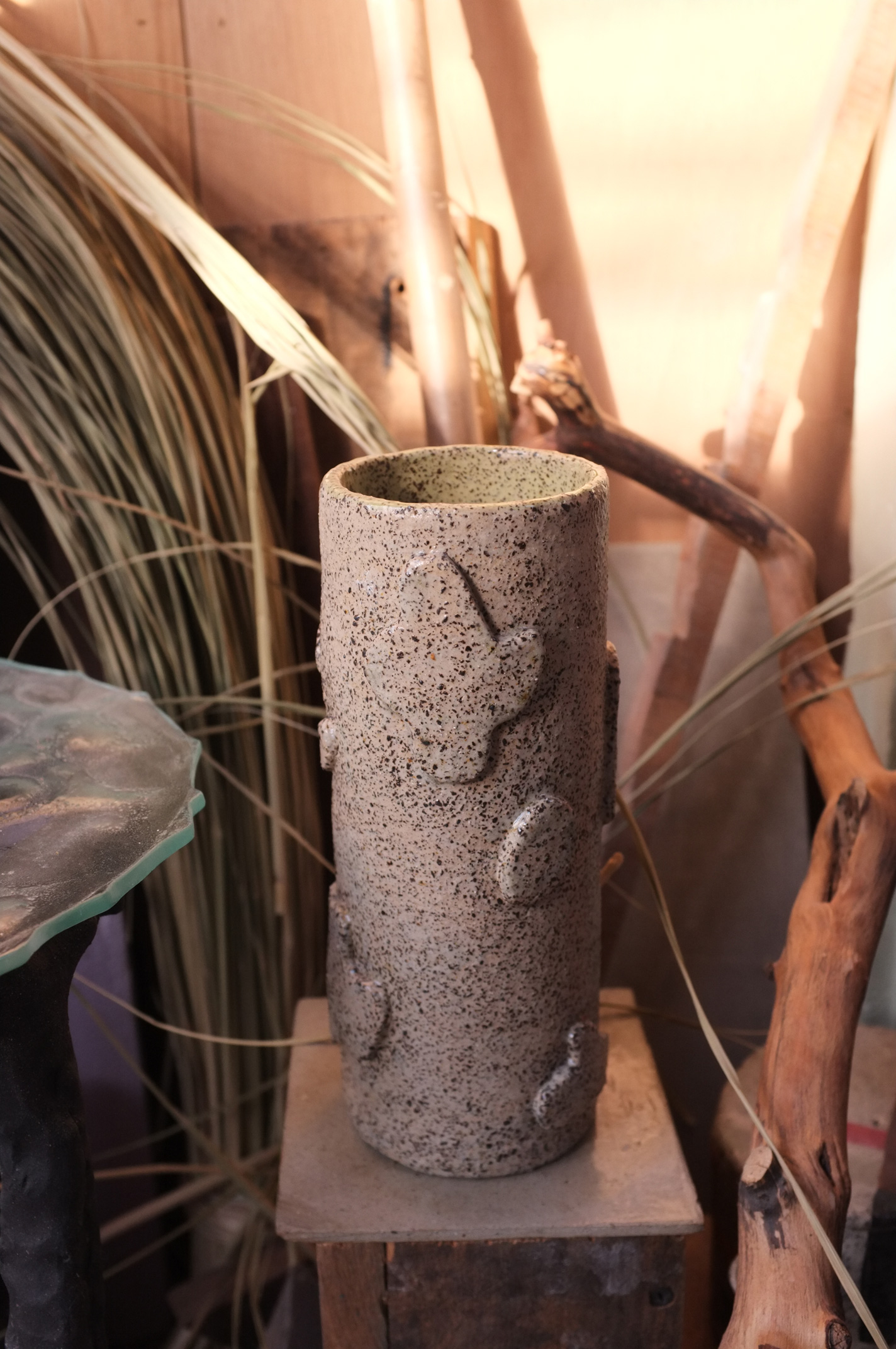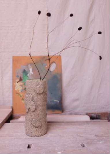 in Stracciatella Clay, Pastel Green + Wood Ash Glaze Ø 8,5 cm H 23 cm