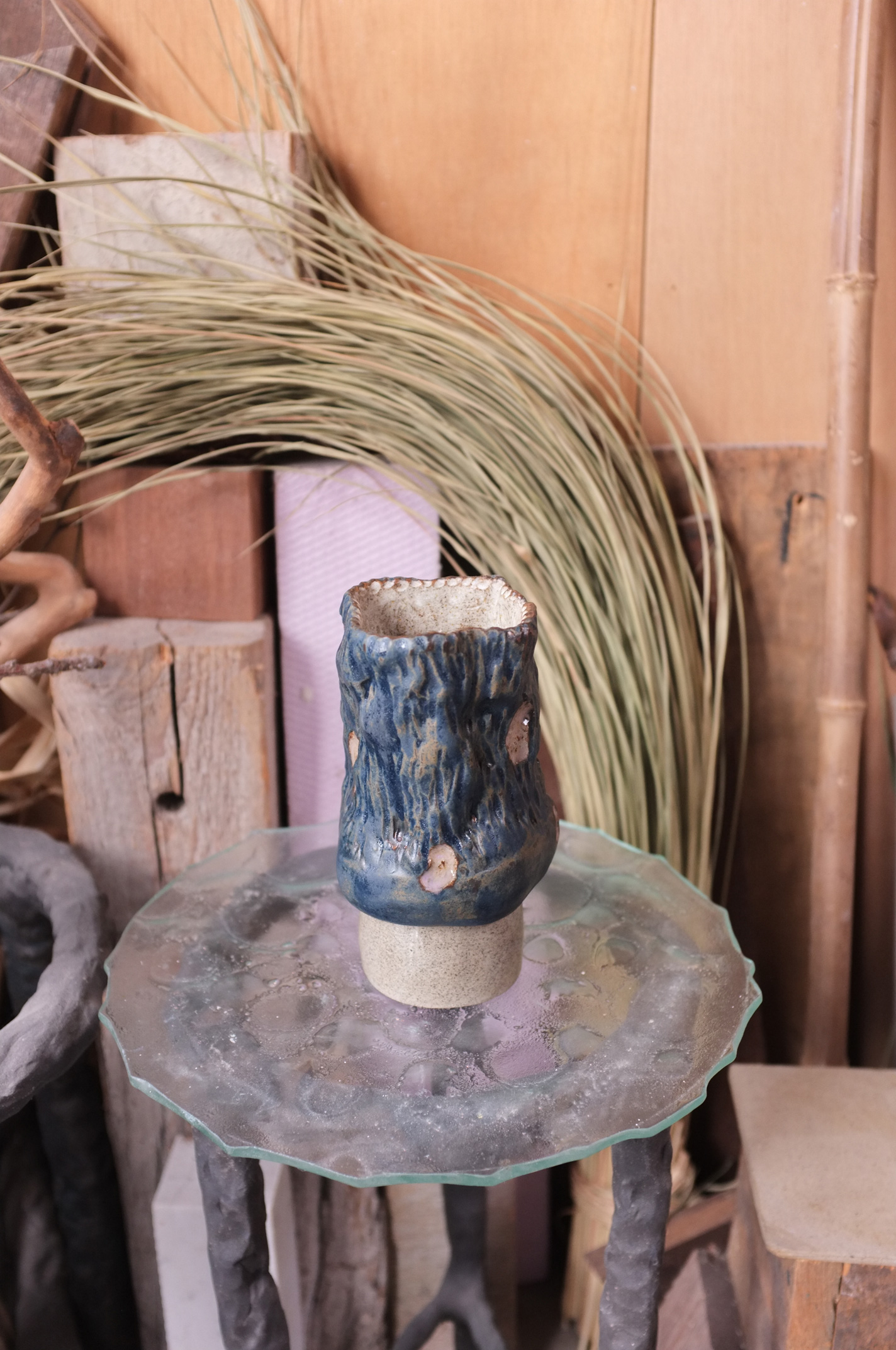 Grey Speckled Clay with Matte Midnight Blue Glaze