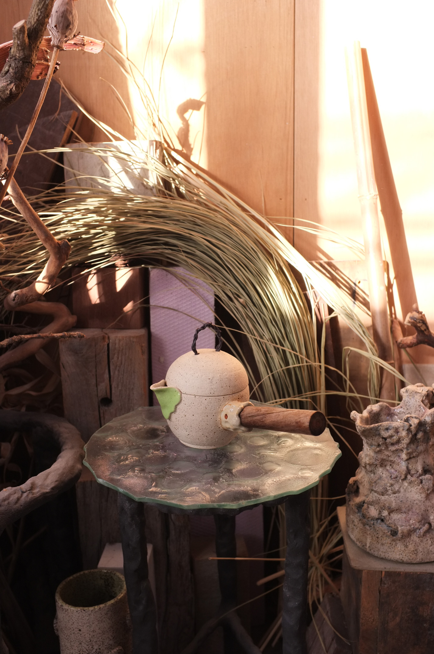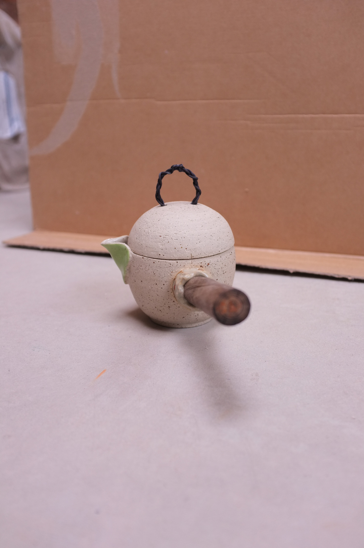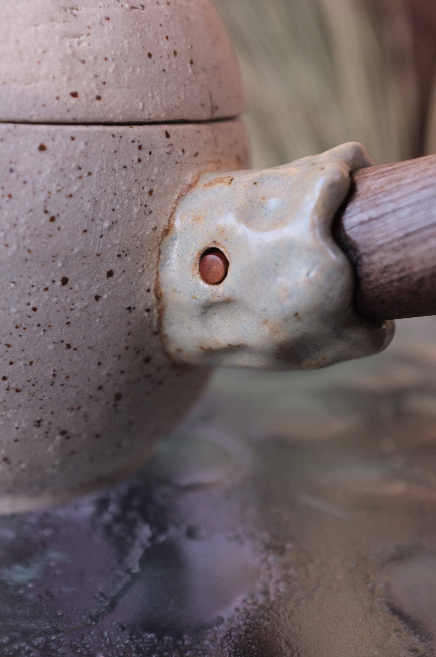Wheel Thrown Tea Pot with Wooden Handle in Ochre Clay and