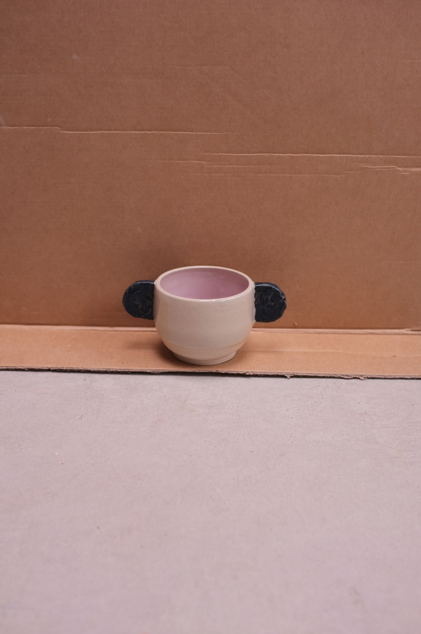 Cup in White Clay with Matte Oat Glaze + Cream Pink Glaze