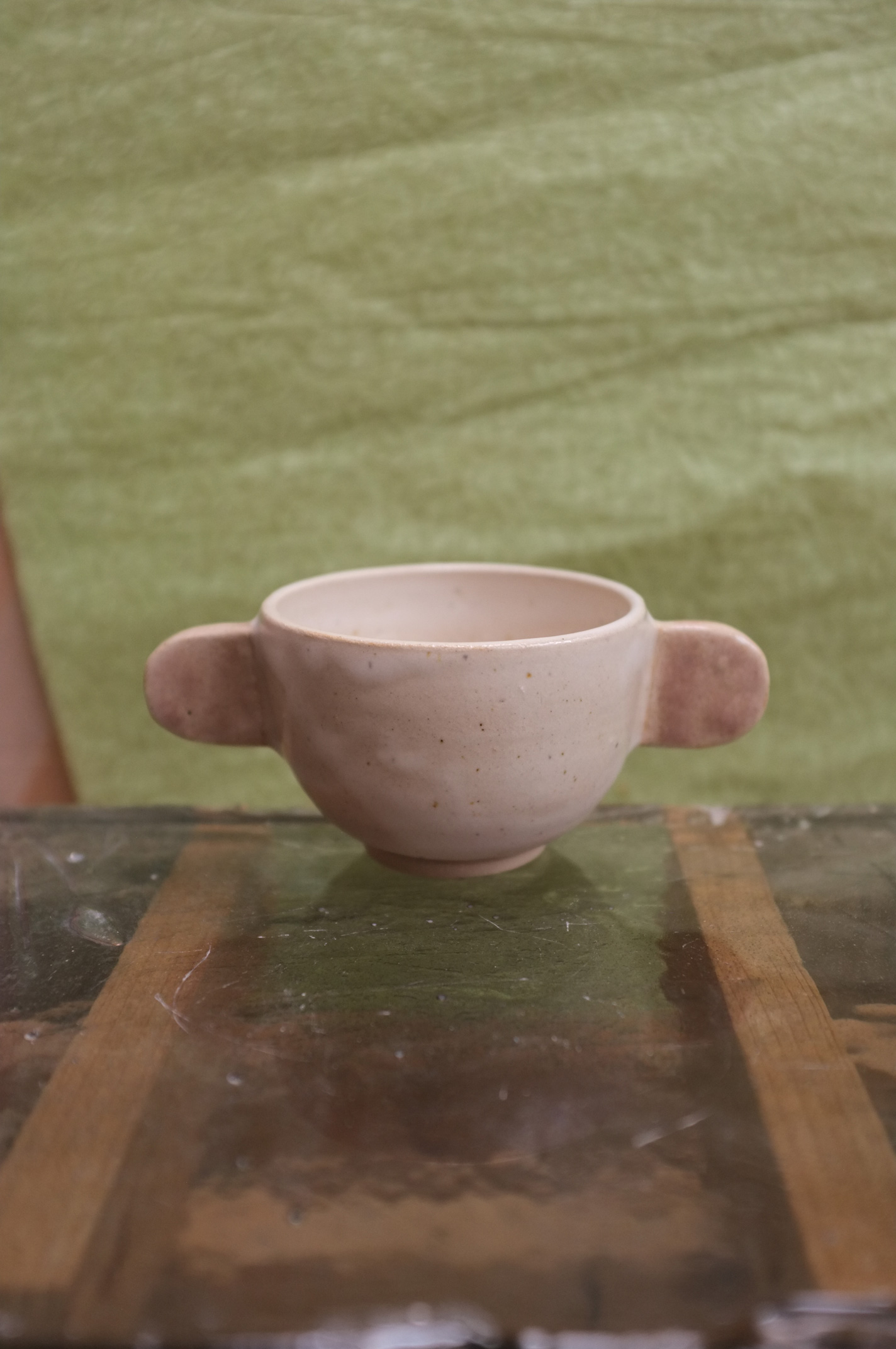 Cup in White Clay Clay with Pistache + Sheer Glaze
