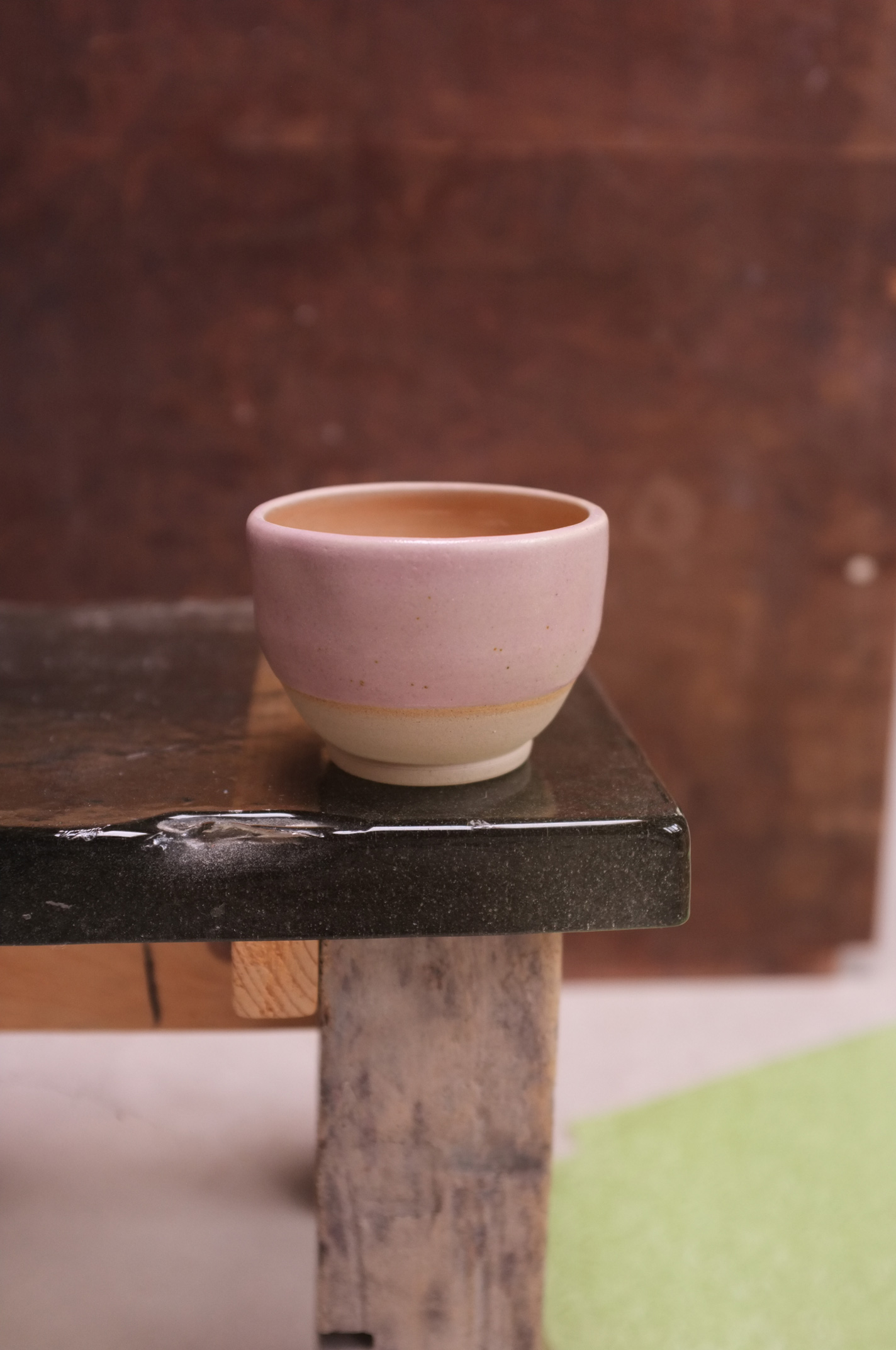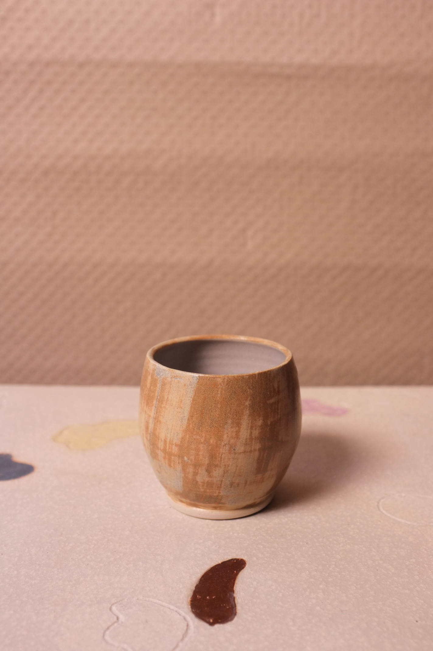 - ochre brown clay and matte cream + sheer glaze