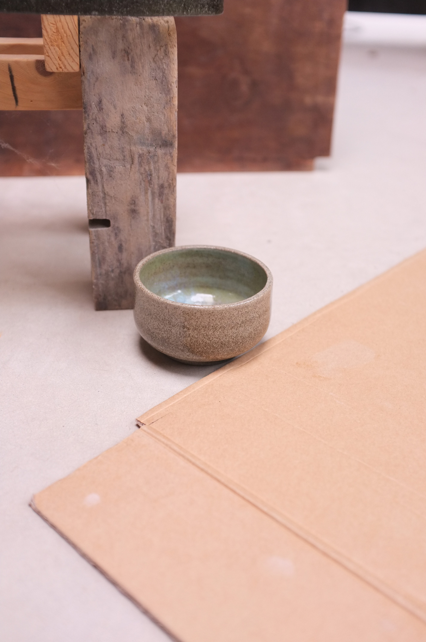 - grey speckled clay and pastel green + sheer glaze