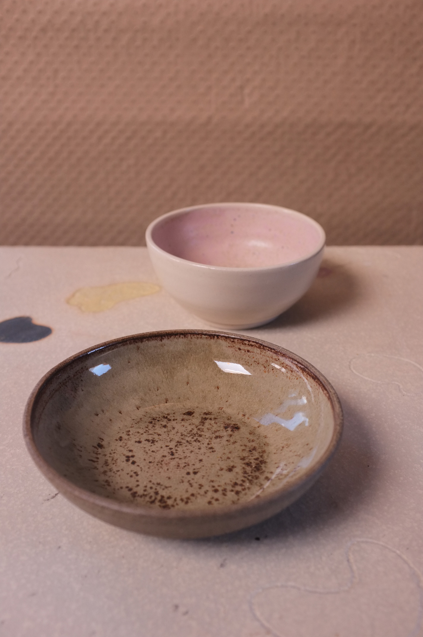 in White Clay, Matte Speckled Mauve + Sheer Glaze Ø 12 cm H5,5 cm
