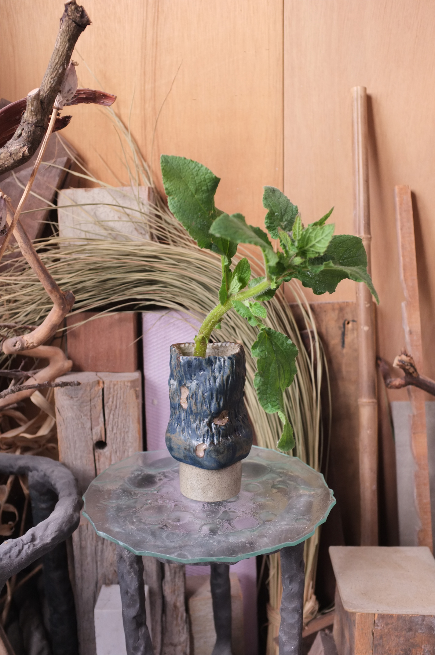 in Black Clay, Sheer, Matte Oat + Midnight Blue Glaze W 5 cm L 12 cm D 4,5 cmH 20 cm