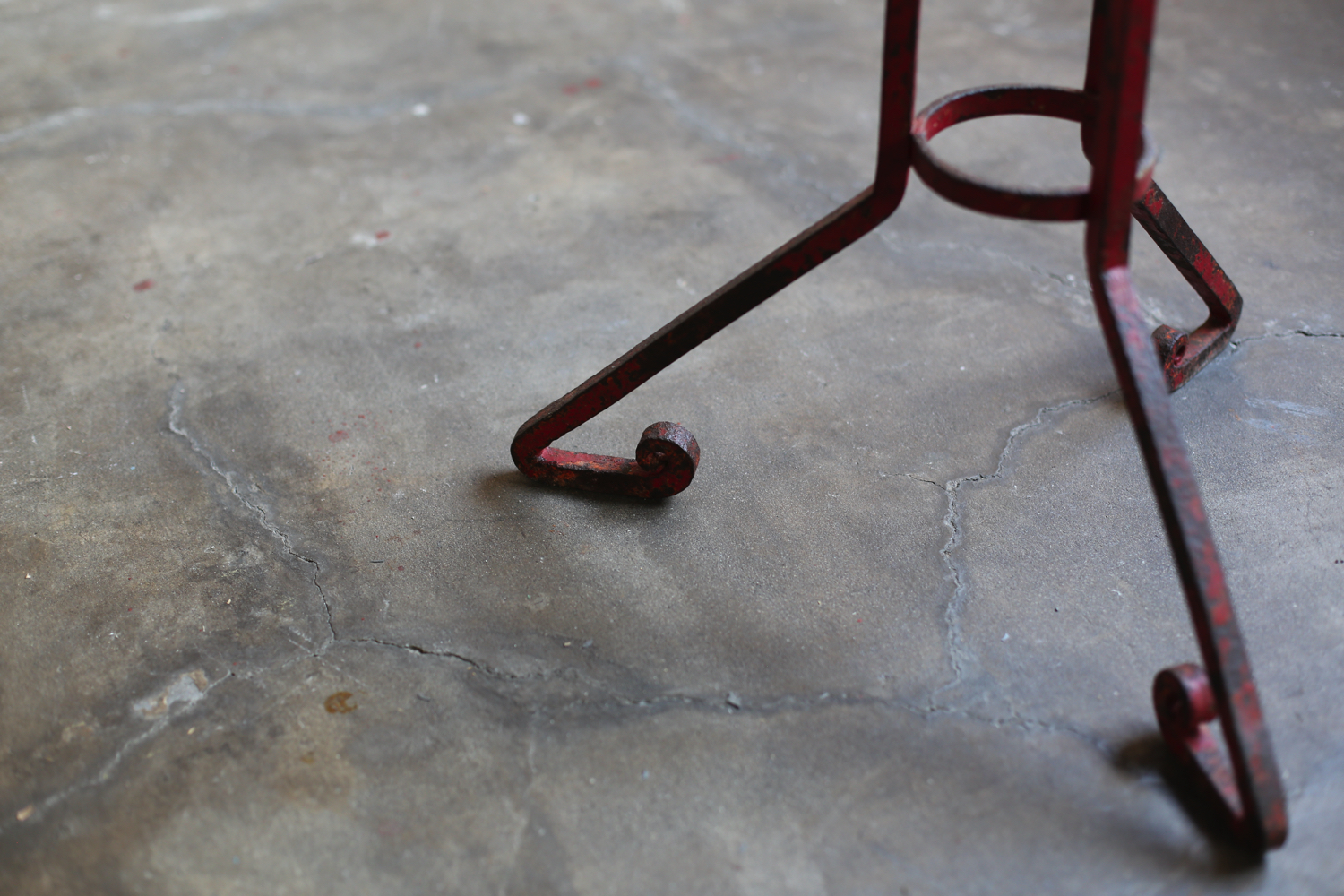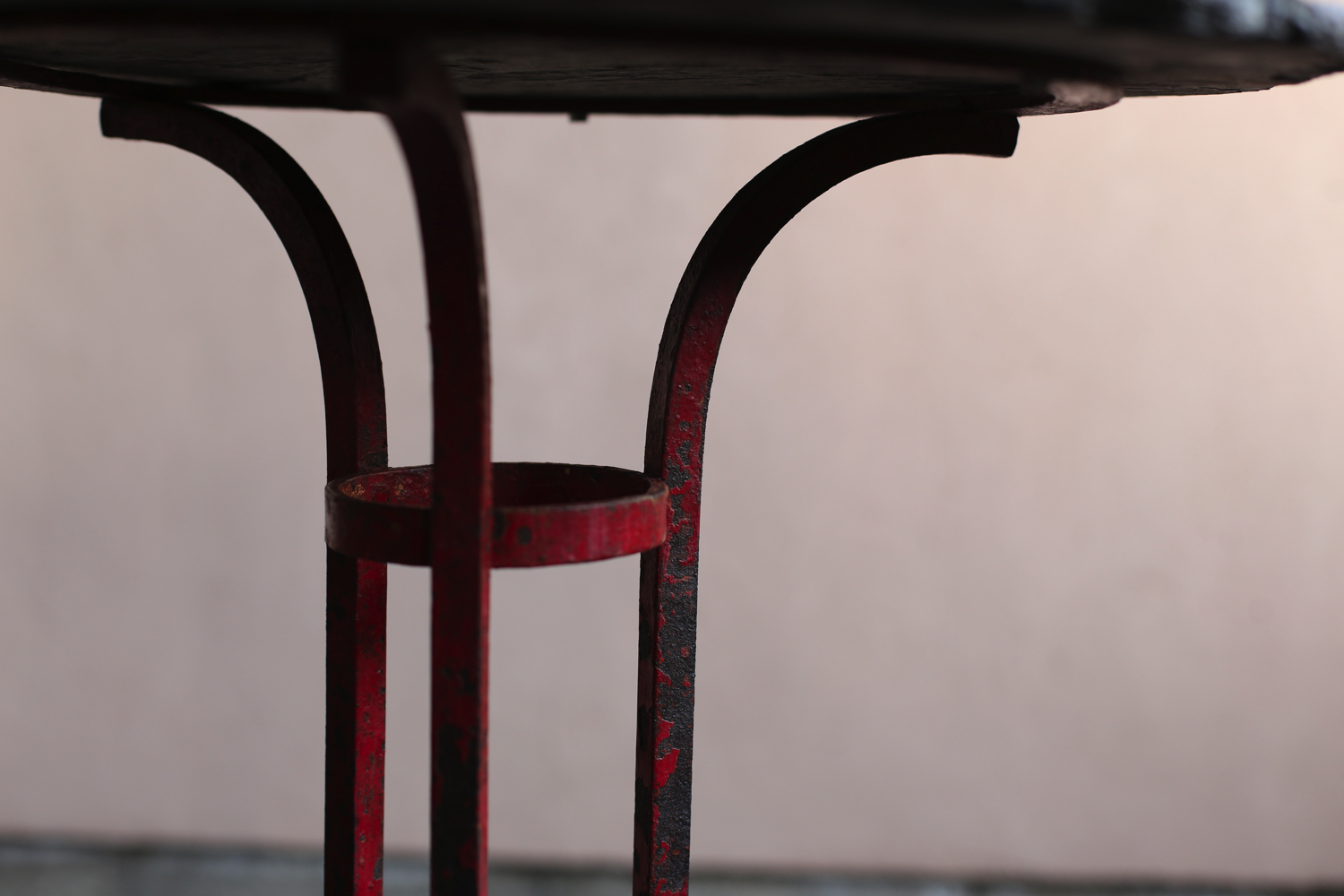 長い時間を経て刻まれた石の表情と、赤く彩られたアイアン脚の経年変化が、ポルトガルの地方工芸の温もりを伝えています。庭やインテリアのアクセントとしても美しく映える一品です。