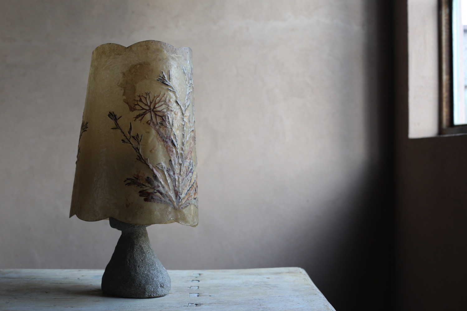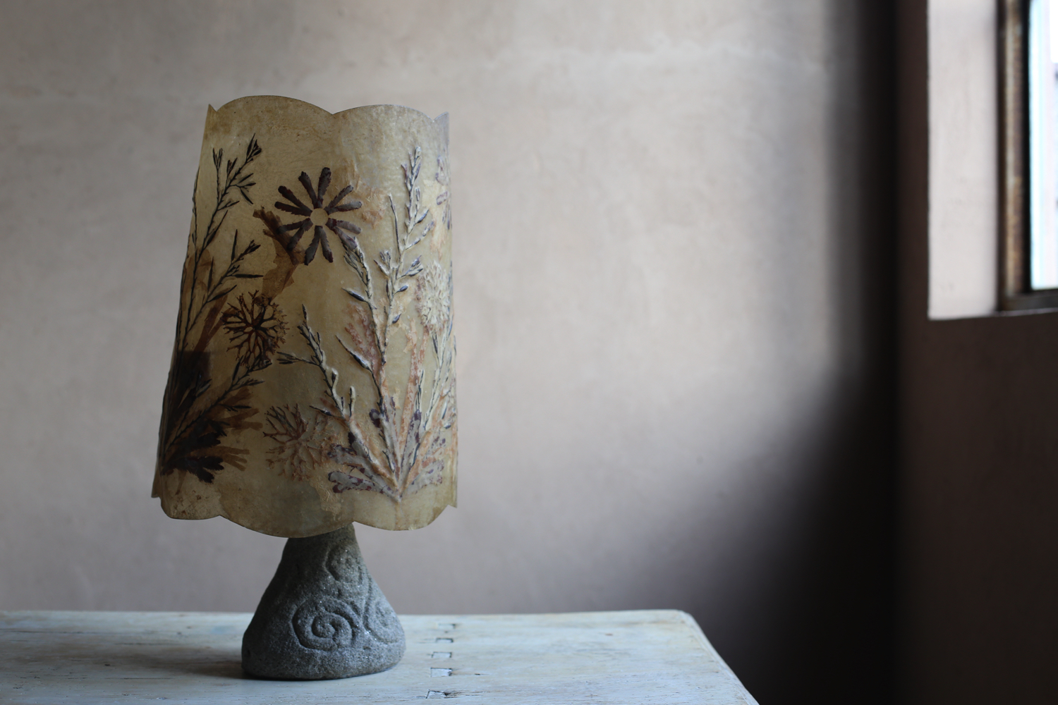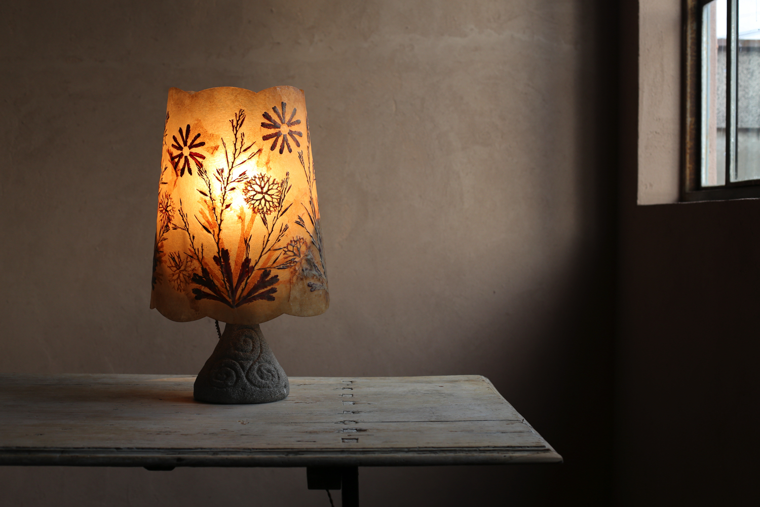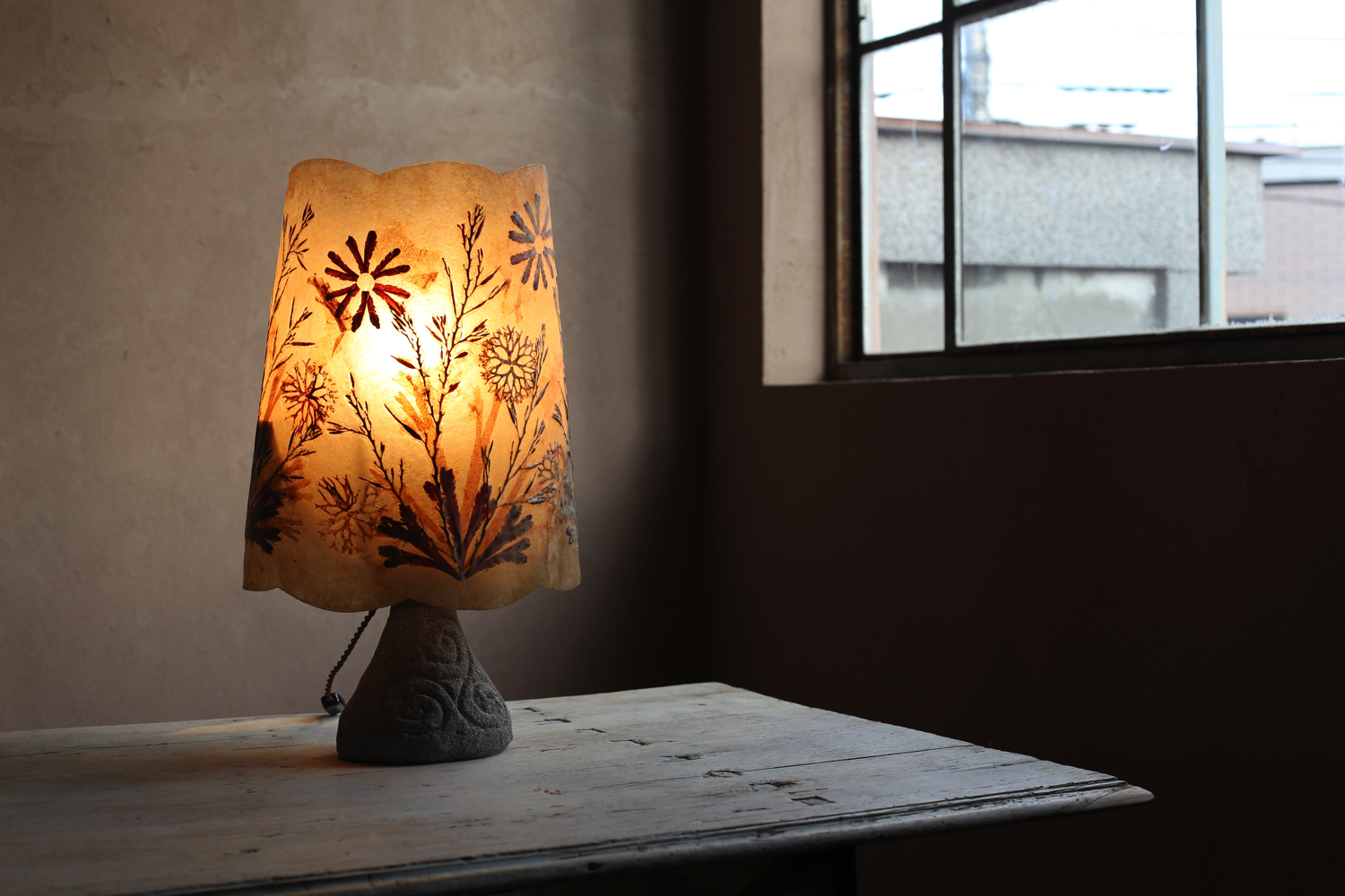 シェード部分は押し花のように植物が封じ込められた樹脂で成形されています。