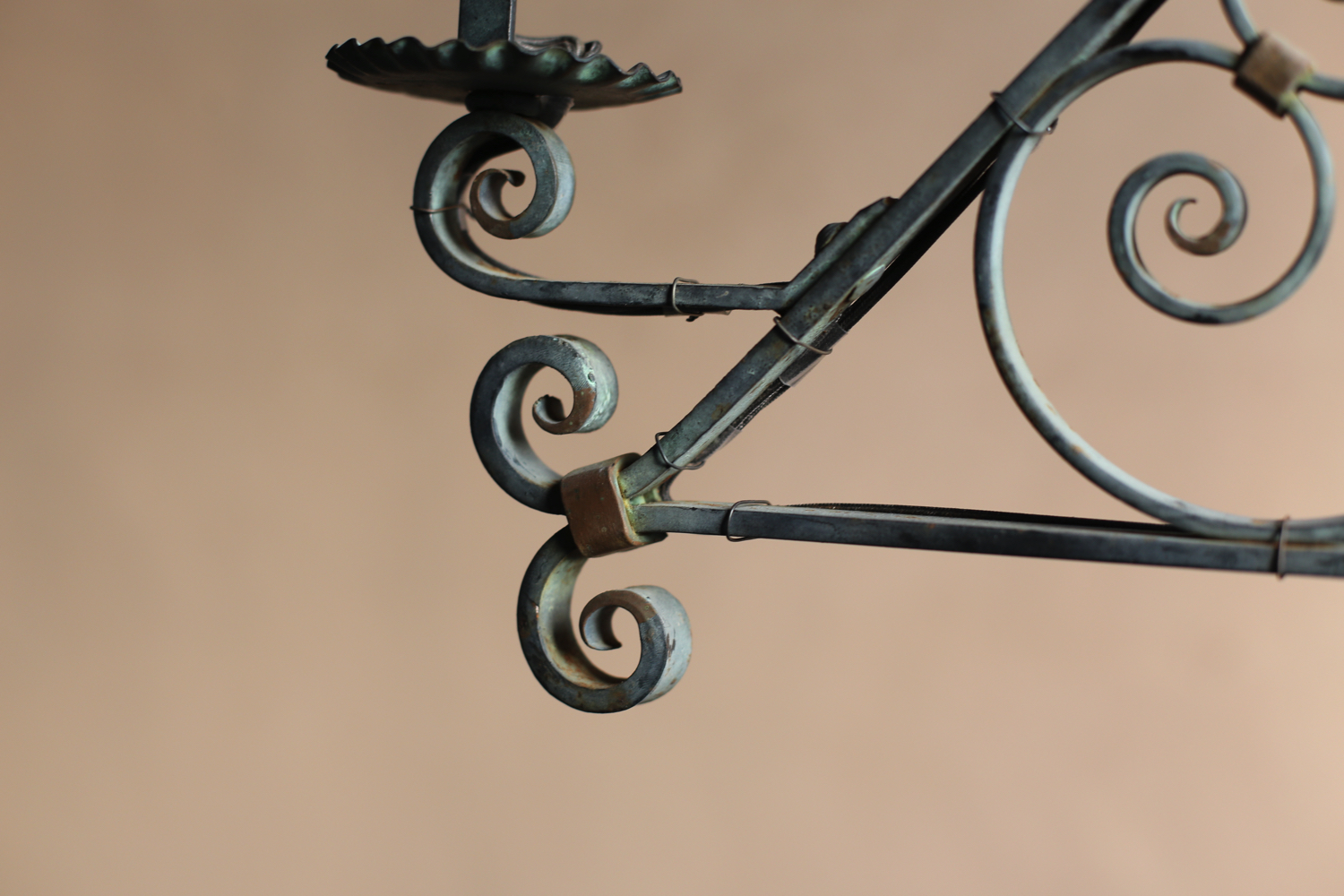 ハンドフォージ(手鍛造)のアイアンによる構造で、ねじりやスクロールといった装飾的な鍛鉄細工が随所に施されています。