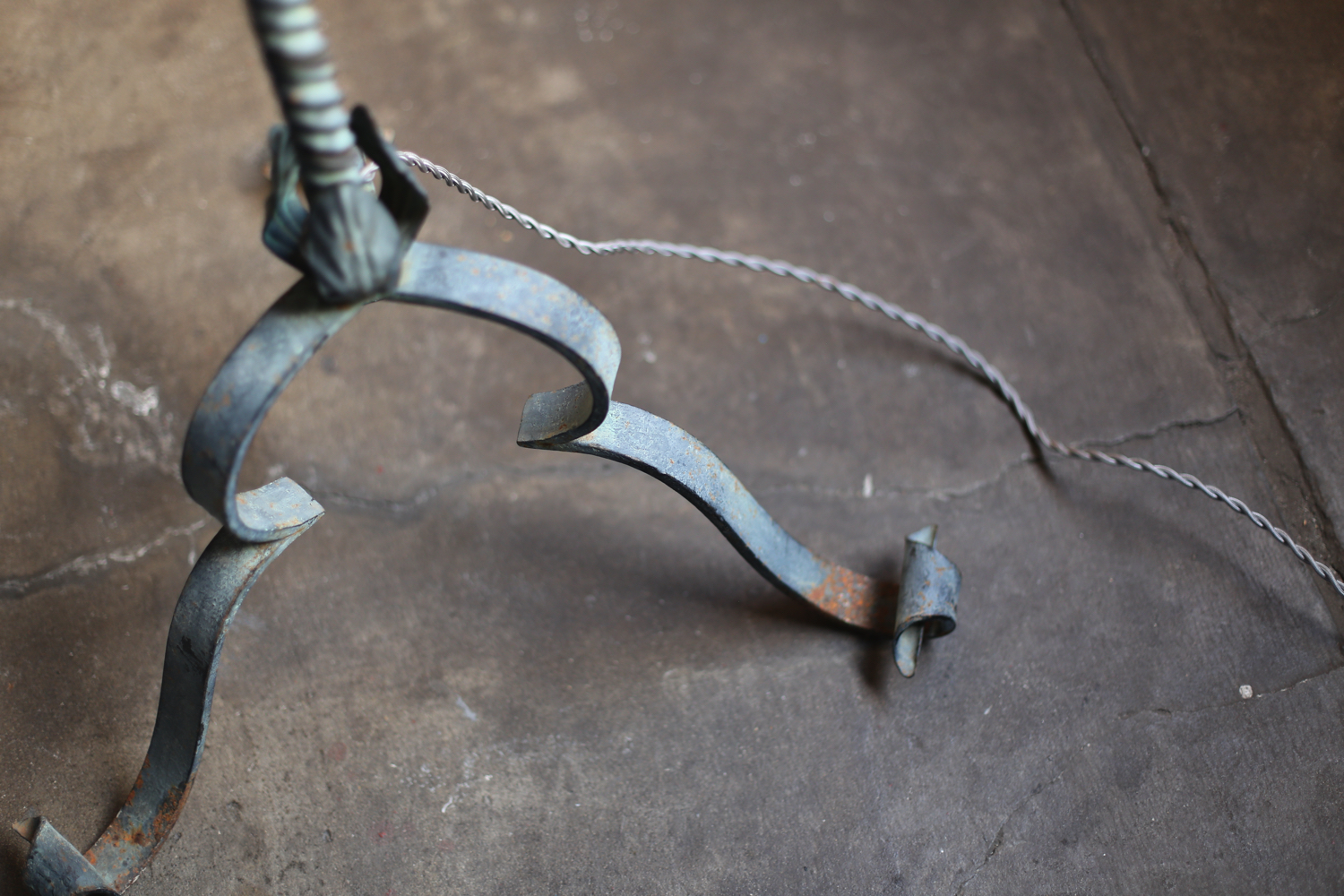 緑青を帯びた鉄の質感や、部分的に覗く真鍮パーツが年月の深みを感じさせ、